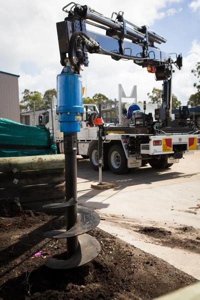 Egyre nagyobb a népszerűsége annak, hogy a teherautó darujára talajfúró adaptert szerelnek, növelve így a teherautó kihasználtságát. Mivel sokszor szállítójárműként amúgy is egy hasonló teherautóval szállítják ki a talajfúró gépet (minikotró, kotrógép, kotró-rakodó, homlokrakodó, stb) a munkaterületre, szóval mindenképpen a helyszínre megy a teherautó. A 'TC' típusú talajfúró adaptereket úgy tervezték, hogy a teherautók hidraulikus teljesítményével kompatibilis legyen. Egészen alacsony, akár 5 l/perc térfogatáramtól már üzemeltethető a legkisebb lyukfúró meghajtóegység. A kinyújtható gémszerkezetnek köszönhetően benyúlhatunk olyan helyre is, ahova különben a teherautó mérete miatt nem férne be.